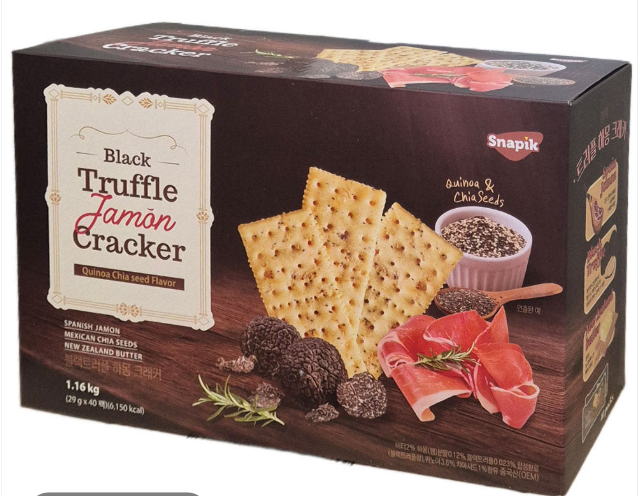 코스트코에서 파는 대용량은 SNAPIK(스냅픽) 블랙트러플 하몽 크래커로, 별도 브랜드의 참크래커 타입이에요.